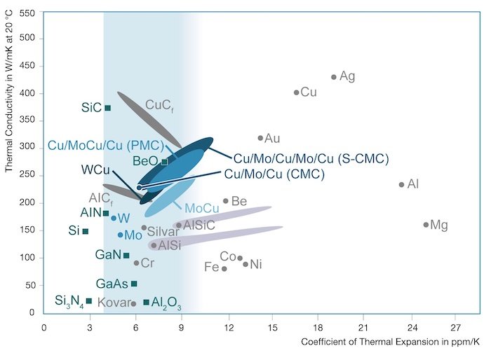 Conductividad térmica de diferentes materiales. Imagen utilizada por cortesía de Plansee
